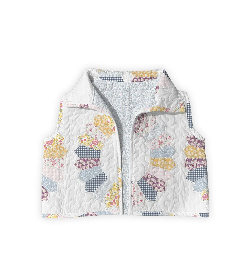 Cate Dresden Patchwork Pastel Quilted Scallop Vest