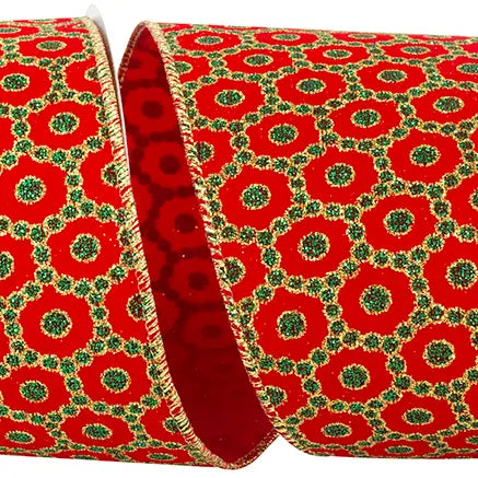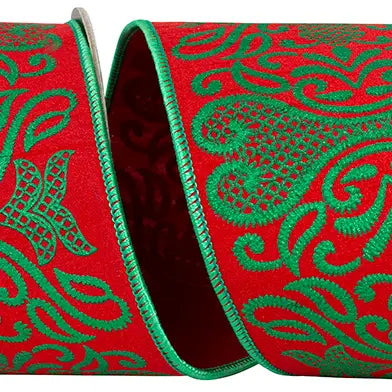 Roccoco Christmas Wired Edge, Red/Green, 4 in, 10 Yards