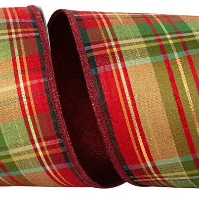 Plaid Verde Tradition Deluxe Backed Wired Edge, Green/Red