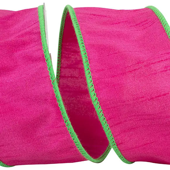 Dupioni Color Edge Wired Edge, Fuchsia /Lime, 2.5 in